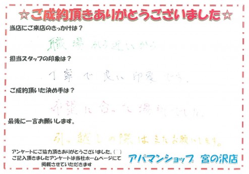 【ご成約頂いたお客様の声】アパマンショップ 札幌賃貸事業部 宮の沢店宮の沢店 フリーダイヤル 0120-958-051にてご成約