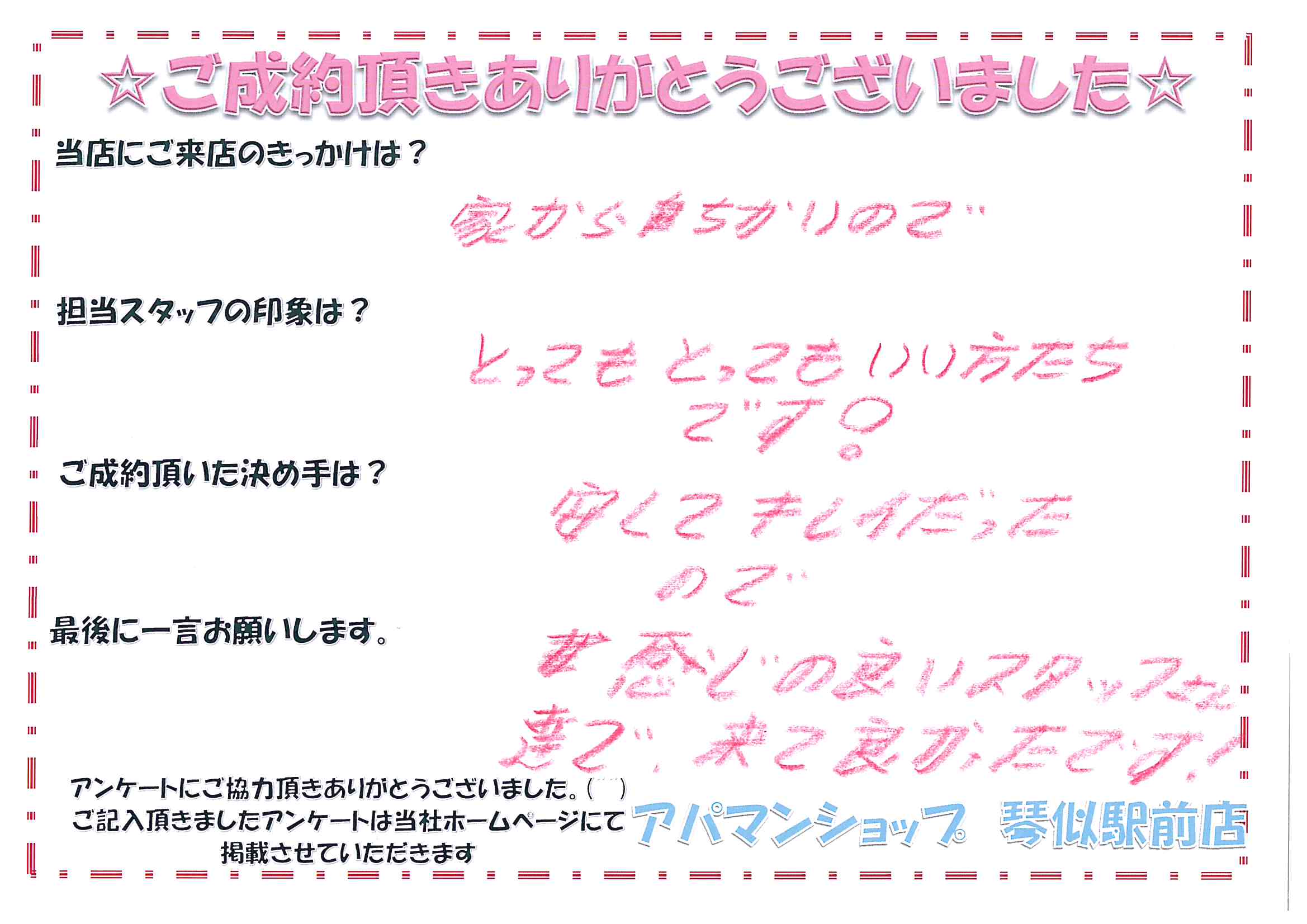 お客様の声 アパマンショップで実際にご成約いただいた方の生の声をご紹介。