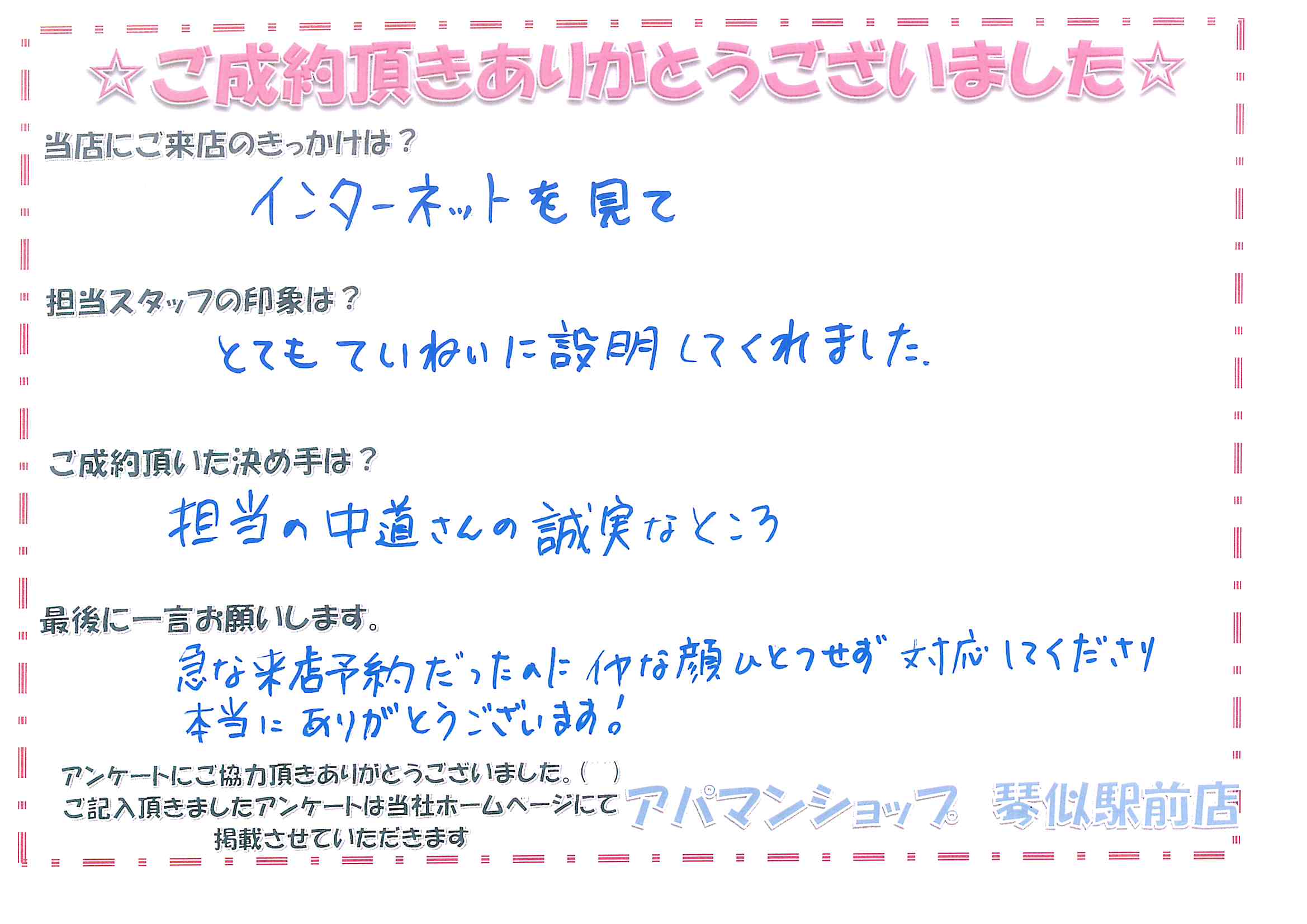 今月もお客様の声をご紹介致します★
