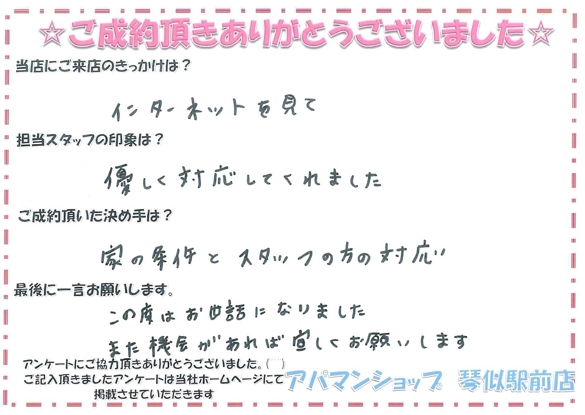 お客様の声 アパマンショップ ㈱NCK 琴似駅前店琴似駅前店 フリーダイヤル 0120-945-151にてご成約